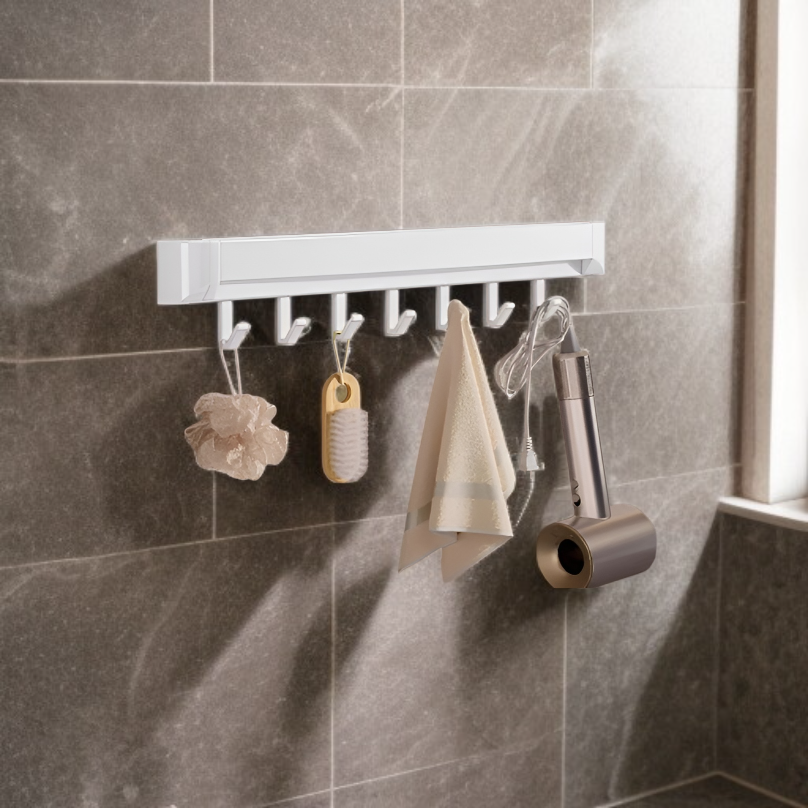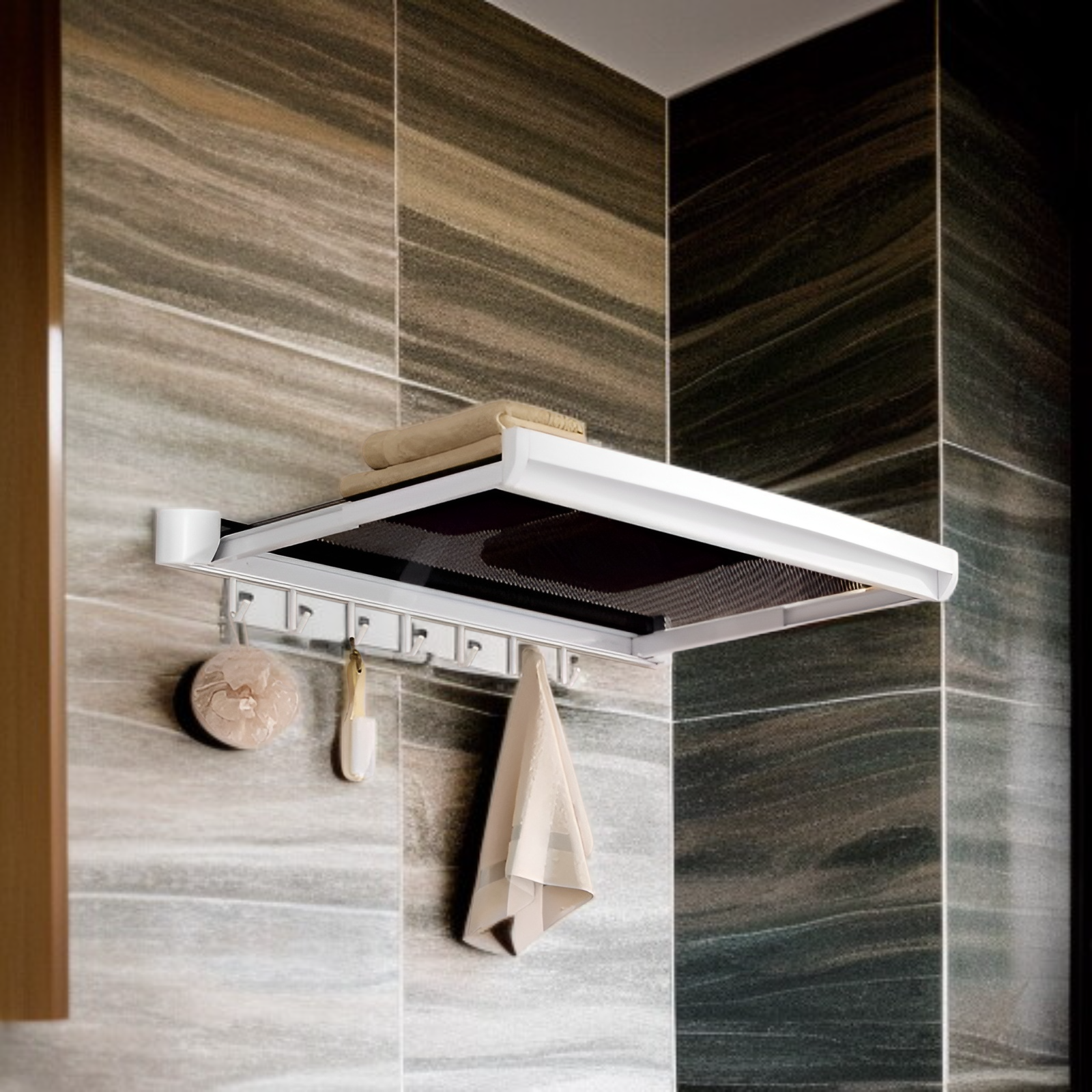 ชั้นวางของในห้องน้ำแบบติดผนัง พับเก็บได้ พร้อมตะขอเกี่ยว